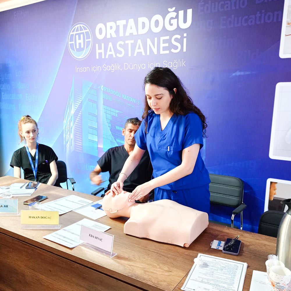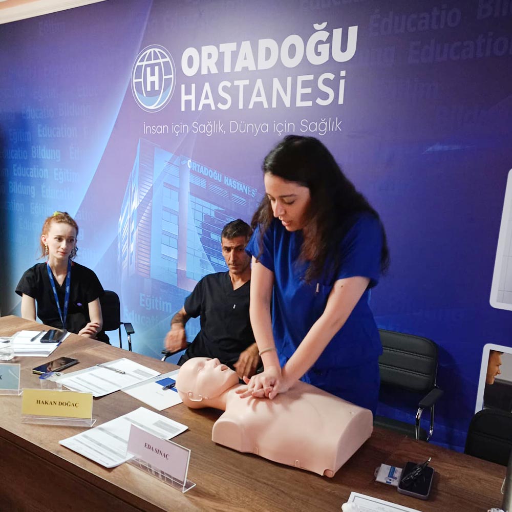 - Eğitim Hizmetleri Müdürümüz Fatma Çelik ve 4. Kat Servis Sorumlu Hemşiremiz Hakkı Kaya, ilk yardım,