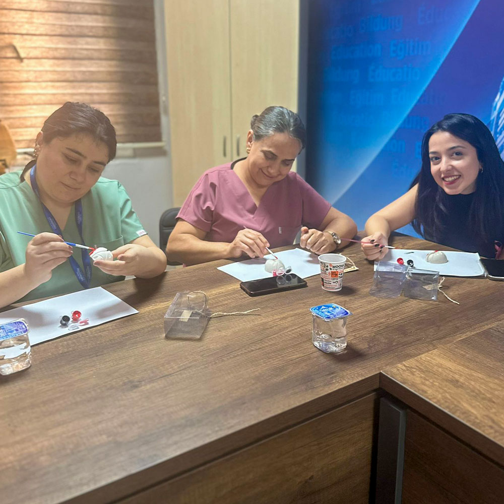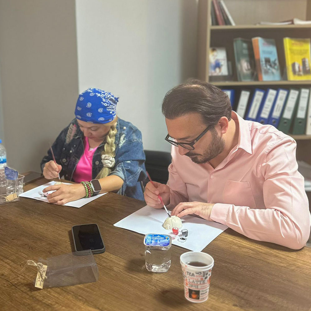 Değerli mesai arkadaşımız Cansu Elçi’nin el emeğiyle kalıba döktüğü uğur böceği ve kelebek taşları, Tıbbi Onkoloji Uzmanımız Doç. Dr. Cem Mirili, hastalarımız ve çalışma arkadaşlarımızın katılımıyla birlikte boyandı.